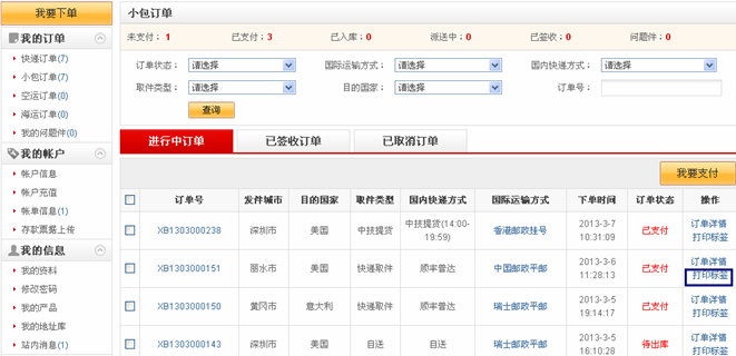 1、Vào mục “Đơn hàng của tôi”, nhấp vào nút “In nhãn” tại cột thao tác trong danh sách đơn hàng.