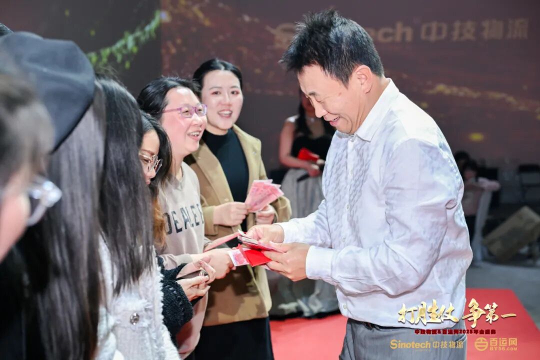 那些未抽中奖品的小伙伴们,迎来了张总带来的意外之喜。张总亲自为每一位小伙伴逐一递上现金,用这份贴心关怀,将年会的欢乐氛围推向了全新的高潮 。