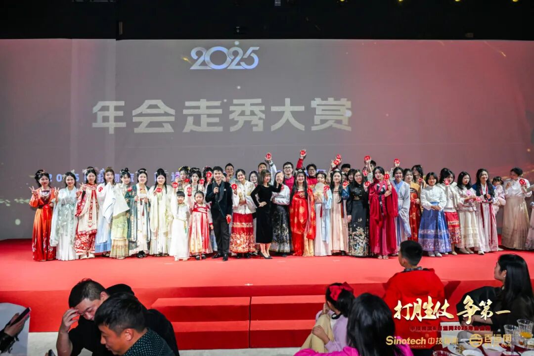 台下观众沉浸其中,仿若穿越时空,置身于古代的繁华盛景。这场古装走秀,不仅是视觉的盛宴,更是一场文化与艺术交织的诗意之旅,为年会增添了一抹绚丽而独特的色彩 。